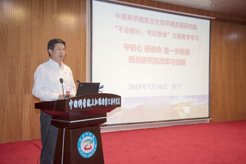 西北研究院院长王涛首先作了《守初心 担使命 进一步推进西北研究院改革与创新》党课报告,报告结合西北研究院的改革创新,从中国科学院在国家的定位、面临的形势和任务、体制改革和机制优化的进展、进一步推进西北研究院改革与创新等四个部分阐述了西北研究院如何学习贯彻习近平新时代中国特色社会主义,守初心担使命,找差距抓落实。报告回顾了西北研究院的战略定位与建设目标,聚焦西北生态环境资源领域,制定“十三五”规划、“一三五”规划、参加中科院特色研究所建设评估工作,凝聚发展共识,强化方向引导,落实目标考核,为加快融合发展和深化创新改革提供了坚实的制度保障。