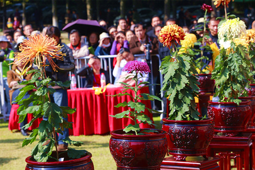 市民观赏打擂菊花