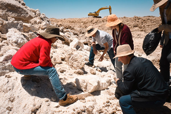 14日,科考队对格尔木河中上游地区进行了考察,系统了解察尔汗盐湖主要补给河流格尔木河流域气候环境和水文水资源情况。15日,科考队前往察尔汗盐湖进行考察,对盐湖区地表环境进行深入细致观察,初步遴选了地面变形监测点位置,并就监测光纤布设相关问题进行了探讨。17日,南京大学团队分别参观了青海盐湖所科技成果展厅、分析测试中心和盐湖地质与环境科研科普基地,深入了解青海盐湖所的发展历程、科技成果与历史贡献。随后,双方就项目的后续开展进行了讨论和部署。本合作项目的顺利实施,将首次在盐湖区开展分布式光纤技术的应用研究,实现地质变形沉降的高精度监测,从而为盐湖资源的可持续开采利用和环境地质变化研究提供重要科技支撑。