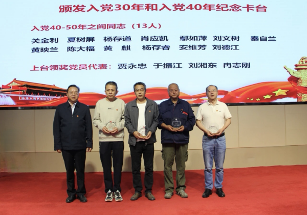 会议宣读了“光荣在党50年”纪念章获得者名单,所党委委托西安二部党支部开展纪念章颁发活动。会议颁发了入党30年和入党40年纪念卡台,全所28名在册党员获得入党30年纪念卡台,13名在册党员获得入党40年纪念卡台。通过颁发活动激励全所党员同志进一步强化党员身份认同,时刻牢记入党初心使命,永葆先进本色,在新时代新征程上接续奋斗,再现新担当、新作为。