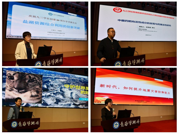 致辞结束后,中国科学院青海盐湖研究所李丽娟研究员作了题为《盐湖资源综合利用的创新突破——李丽娟研究员团队在钾锂硼镁铷铯领域的关键贡献》的学术报告,李丽娟介绍了团队在锂硼镁铷铯提取技术上的突破,研究成果不仅解决了我国战略资源高效开发的难题,还直接推动了产业产值提升,取得了“从实验室到生产线” 的创新硕果。青海大学张寿德副教授作了题为《中藏药靶向活性成分的发现与药理活性研究》的学术报告,张寿德介绍了其团队对中藏药靶向活性成分研究的最新进展,研究成果为中藏药标准化、国际化提供了关键支撑,为青海生物医药产业高质量发展注入强劲动能。西宁市植物园齐新章高级畜牧师作了题为《守护世界屋脊的精灵》的报告,报告从雪豹放归的精准科研到荒漠猫保护的执着坚守,从濒危物种救护的专业实践到千万粉丝科普的广泛传,以科学为基、以热爱为翼,让生态保护既有科研的深度,更有打动人心的温度,生动诠释了人与自然和谐共生的高原答卷。青海省地震局王培玲高级工程师作了题为《新时代,如何提升防震减灾能力》的学术报告,王培玲精准剖析了新时代防震减灾的挑战与机遇,她提出的基层落地路径兼具科学性与实操性,既为高原防震减灾事业筑牢技术防线,更以科普赋能提升全民防灾素养,彰显了科技工作者的责任与担当。